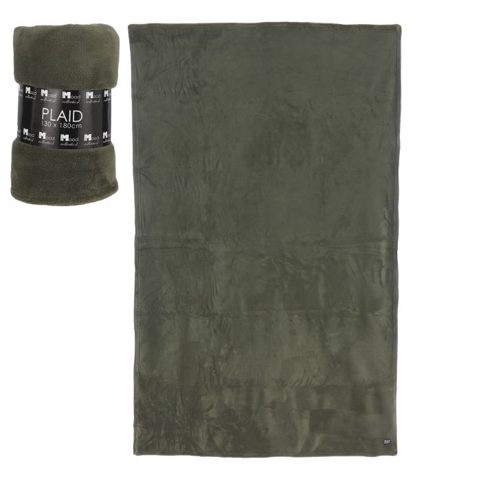 Green fleece plaid from Mood Collection. Made of soft polyester. The fleece plaid measures 180 cm x 130 cm. Available in several colors. Perfect for cool summer evenings or cold winter days.