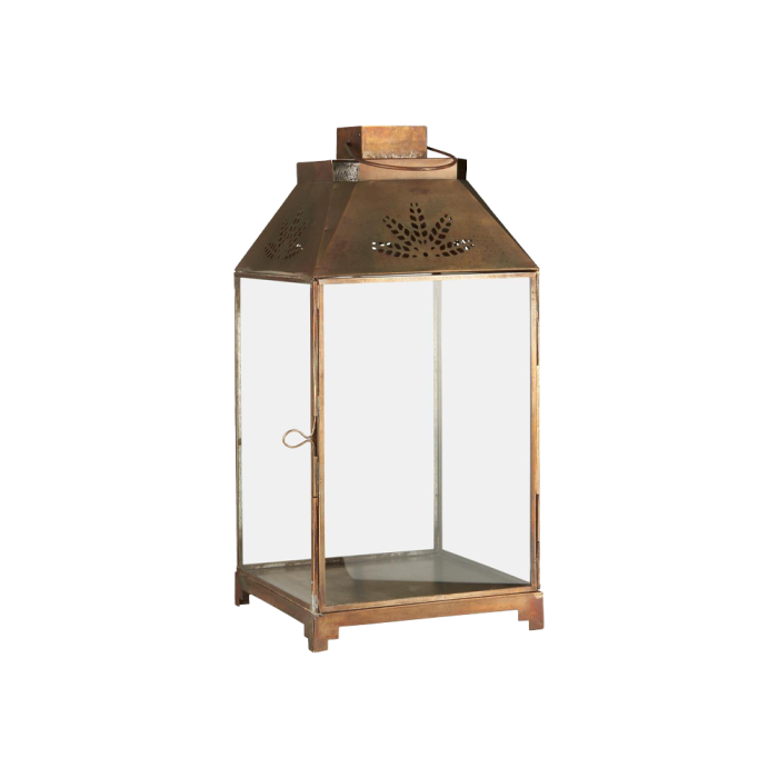 Lantern with leaf-patterned top