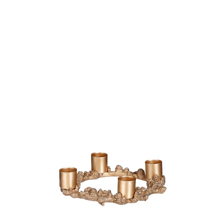 Adventsstage i guldfarvet formet som en rund lærkegren med små lærkekogler på. Dekorativ såvel til jul som til efterår og vinter.