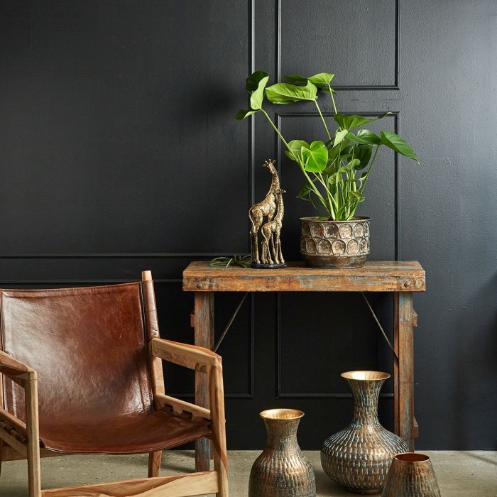 Stående giraff med unge i antik guldfärg från Speedtsberg. En vacker blickfångare för din heminredning. Giraffen finns i flera olika storlekar utan unge.