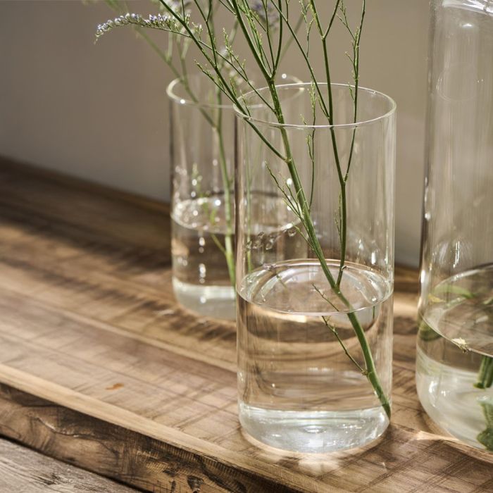Florum cylindrisk glasvas i klarglas från Ib Laursen. Glasvasen är idealisk för blommor, som ljusstake och för dekorationer. Kan fyllas med till exempel sand, stenar, musslor, blockljus och mycket mer. Det cylindriska glaset är mycket populärt som en del av bordsdekorationerna för fester. Finns i flera storlekar.