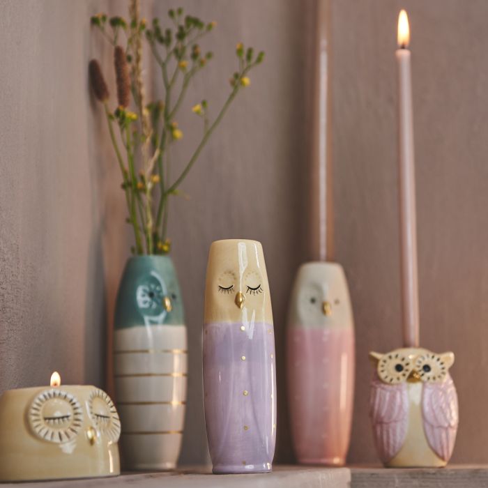 Värmeljushållare uggla rosa och lila - Öppna ögon är restnoterad och kommer att skickas så snart den finns i lager igen.